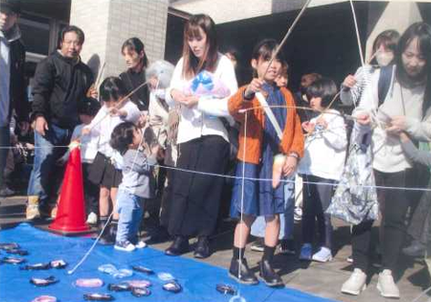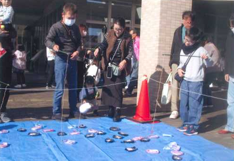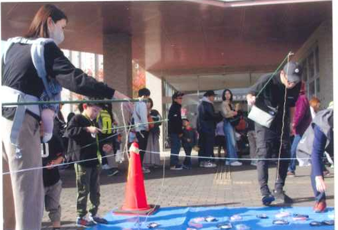 松永学区老人クラブ連合会から新宅会長を中心に8人が、「お宝釣り」のコーナーを担当して、多くの児童や父母の方に喜んでいただきました。