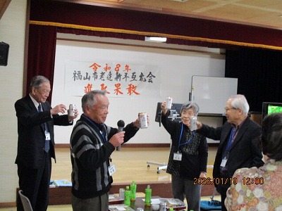 令和8年1月19日(月)瀬戸老人福祉センターにおいて、27名の参加で新年互礼会を開催しました。福山市老人クラブ連合会綱領の唱和の後、橋本会長のあいさつがあり、福山市市民局まちづくり推進部長平林由佳さんによる「持続可能な地域づくりに向けて」の講演がありました。その後、木谷副会長による乾杯で会食・懇談をしカラオケなどで交流を深めました。